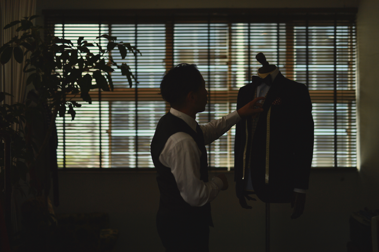 出来あがったタキシードをご着用頂き、サイズの確認を致します。