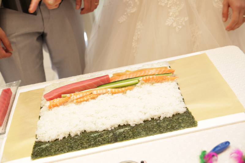 序盤からお祭りらしく、そして2月3日だったので、ウェディングケーキではなく『恵方巻き』作りでゲストの方々をおもてなし!!!![]()