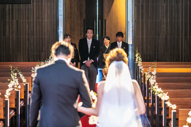 親御様には挙式のリハーサルがあると伝え、チャペルへお越しいただきます。