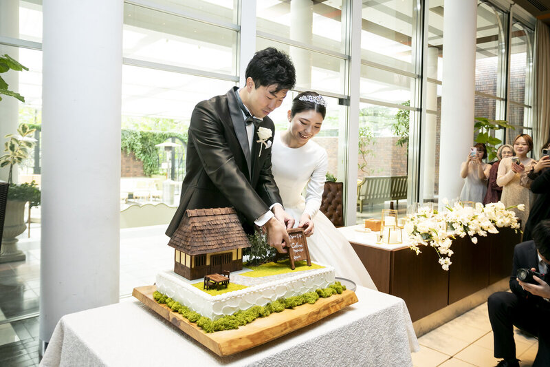 【おふたりの大好物を"結婚式"とかけたケーキ】