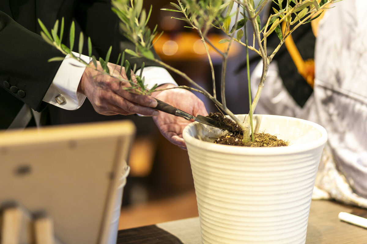 子孫繁栄や家族の幸せを象徴する木を植えることで、新しい家族の誕生と、ゲストの平和や幸せを願う意味が込められています。