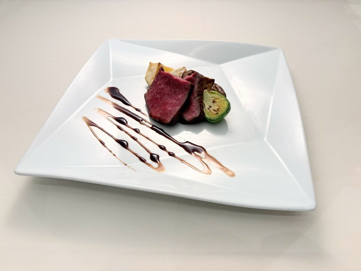 【国産牛もも肉のロースト 季節野菜のソテー バルサミコソース】