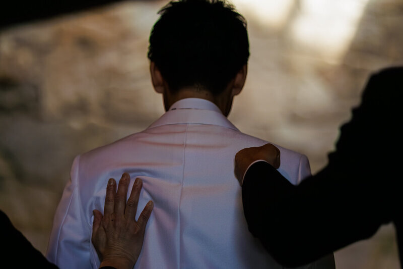 近年人気なのが、ご新郎様が最後のお支度を親御様にお手伝いいただく「ジャケットセレモニー」です。