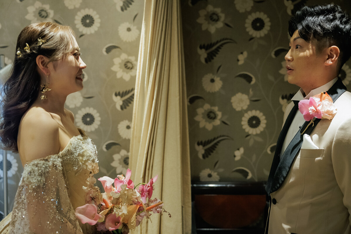 夫には当日までウェディングドレス・ カラードレスを内緒にしていました。 ファーストミートの時にドレス姿を初披露しました。 チャペルでのファーストミートができて、 一生の思い出になりました。