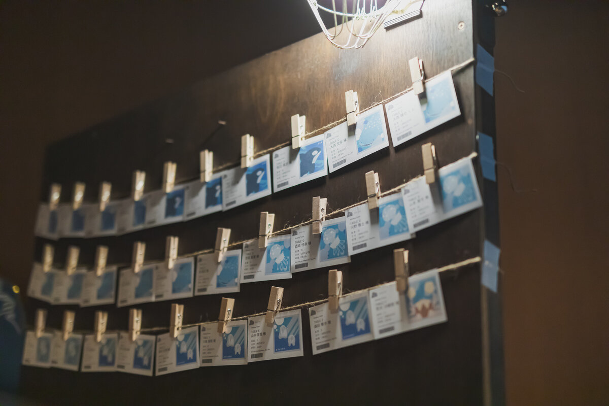エスコートカードは、大好きな海遊館のチケット風にしました。イラストは妹にお願いし、私の好きな海の生き物たちを描いてもらいました!