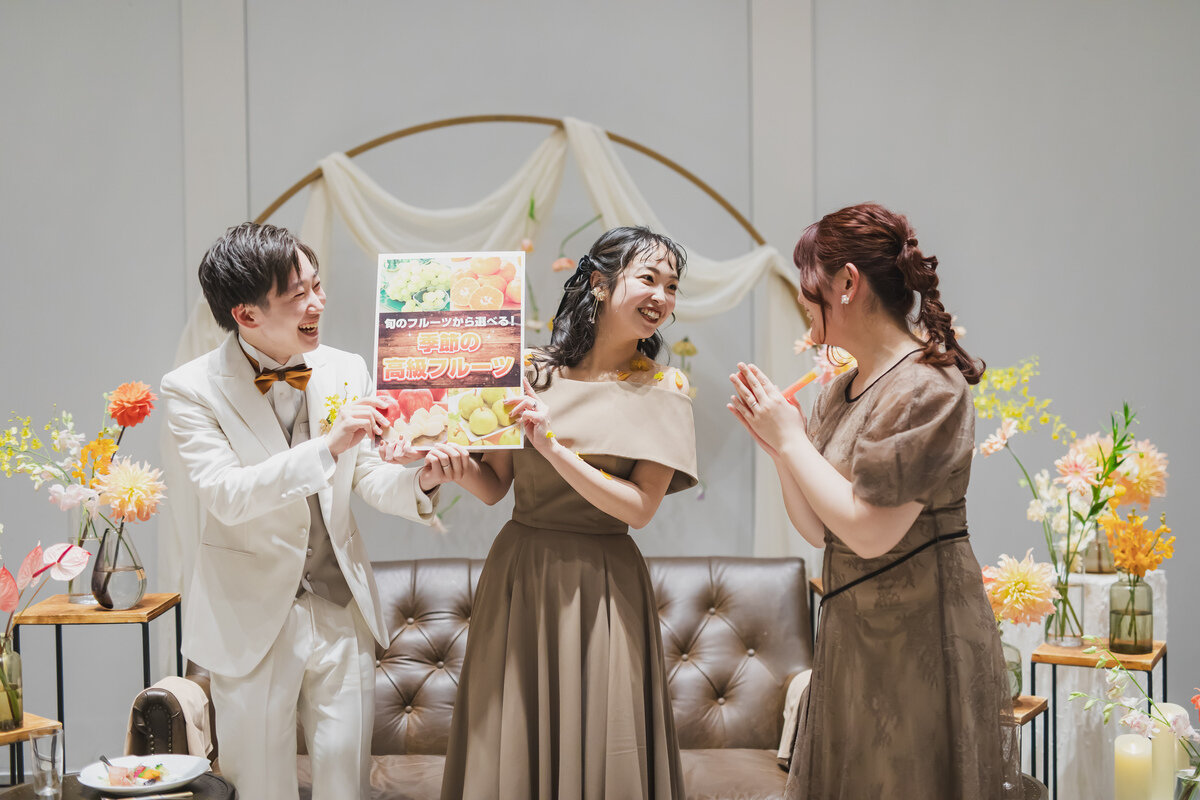 私たちが結婚式をしようと決めたのは、これまで支えてくれた周りの人たちに感謝の気持ちを伝えたいと思ったことがきっかけ。準備期間中は、「大好きなゲストのみんなを笑顔に、幸せにしよう!」って何度も話していたんですが、いざ当日を迎えてみたら、幸せをもらったのは私たちの方でした。