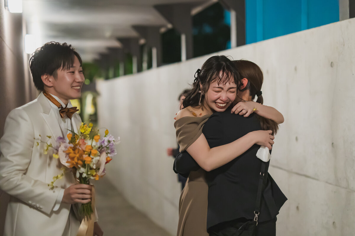 会場を出た瞬間、ほっとした気持ちと寂しさが一気に押し寄せて...。思わず号泣!森國さんと抱き合ったあの瞬間の写真は、私たちのお気に入りの一枚です★