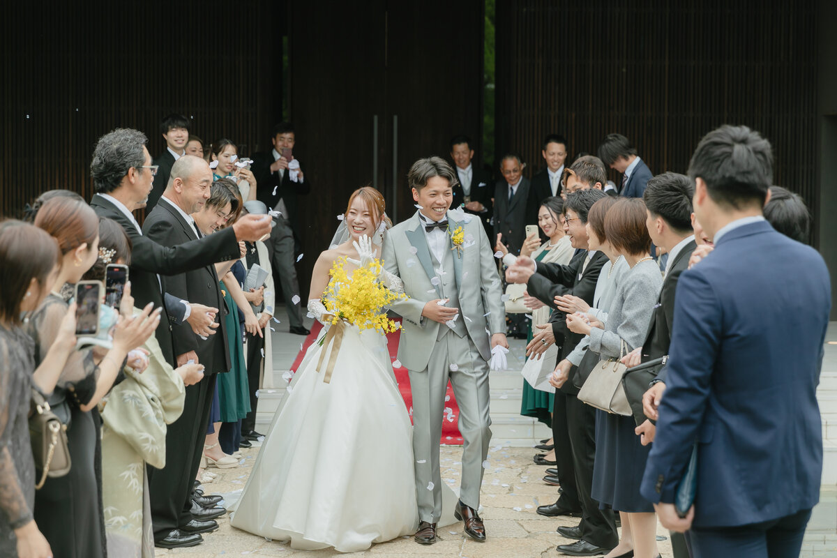 チャペルの雰囲気、フラワーシャワー時の芝生の雰囲気、凄くおしゃれで映えました。