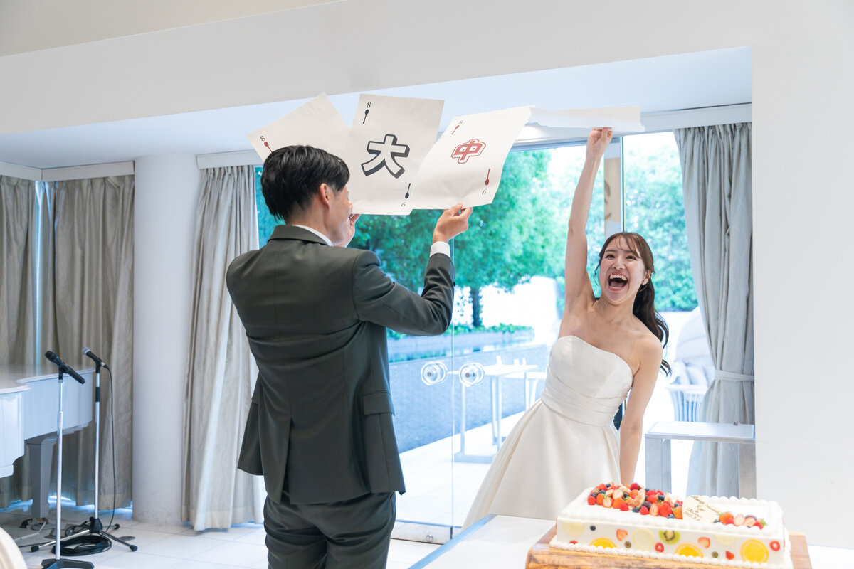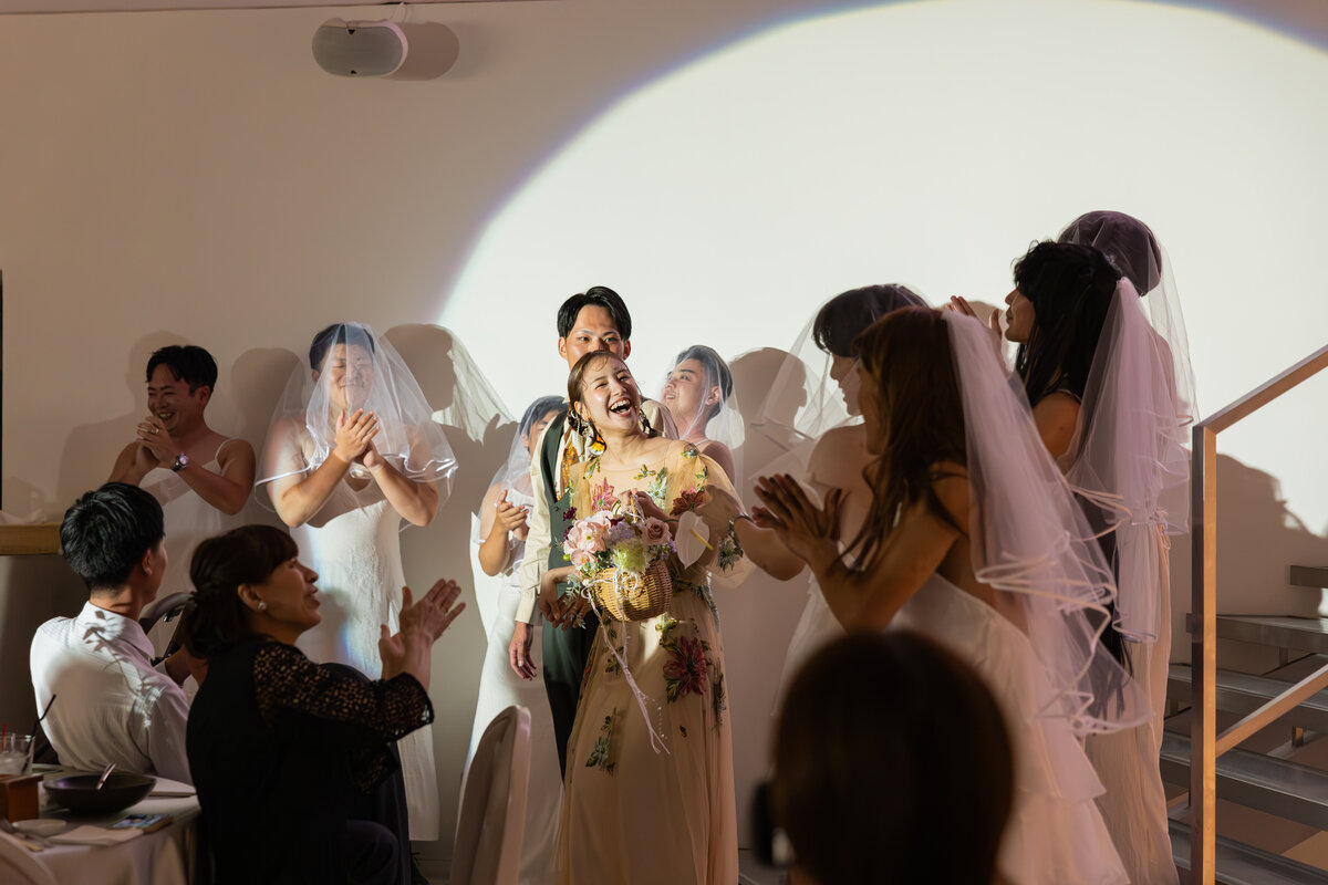 一番こだわった演出は、お色直し後の再入場の演出です!新郎友人![]()