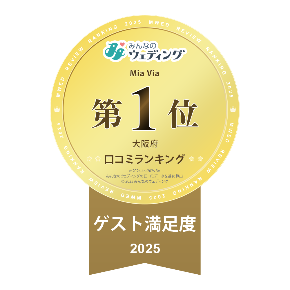 群を抜くクオリティの高さで驚きや感動を与えるウェディングケーキや、想い出のお料理でいつでも「おかえりなさい」とお迎えできるレストランなどMia Viaならではの魅力も加わり、今回の評価をいただけました。